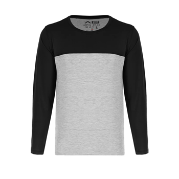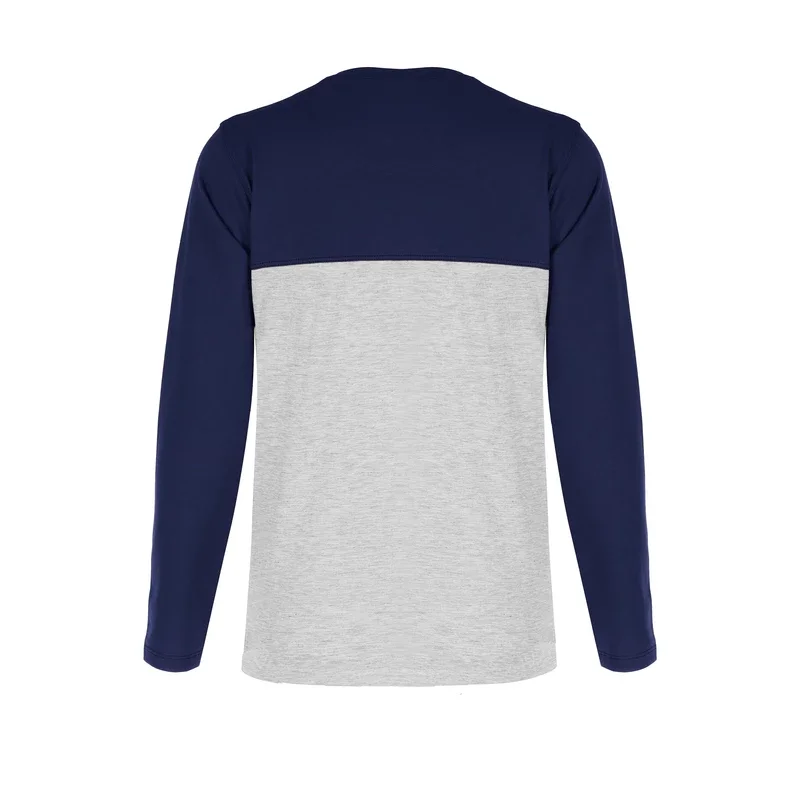 تیشرت آستین بلند صد در صد پنبه خالص طرح دو رنگ سرمه ای مشکی